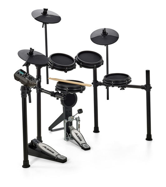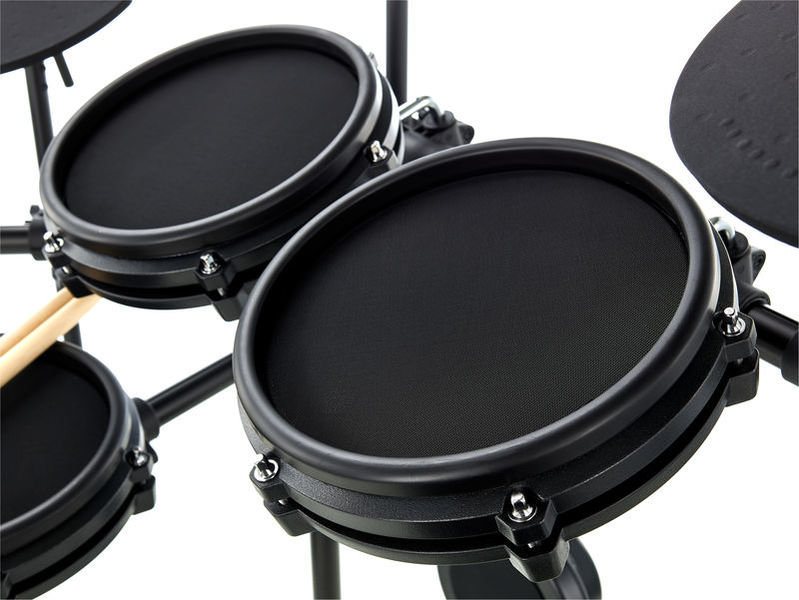 Bateria eletrônica Tom e caixa de tarola equipados com cabeças de malhas de malha Módulo de bateria nitro com 385 sons 25 kits predefinidos 15 kits de usuário 60 Músicas Metrônomo Tomadas mono de 1/4 "(L / R) para conexão com alto-falantes ou consoles de mixagem Saída para fone de ouvido com conector estéreo de 6,3 mm Entrada estéreo de 3,5 mm Entrada Mix para conectar um MP3 ou CD player 2 entradas jack estéreo de 6,3 mm para pad adicional de timbres e pratos Interface USB-MIDI para conexão direta de Mac ou PC Definir configuração: