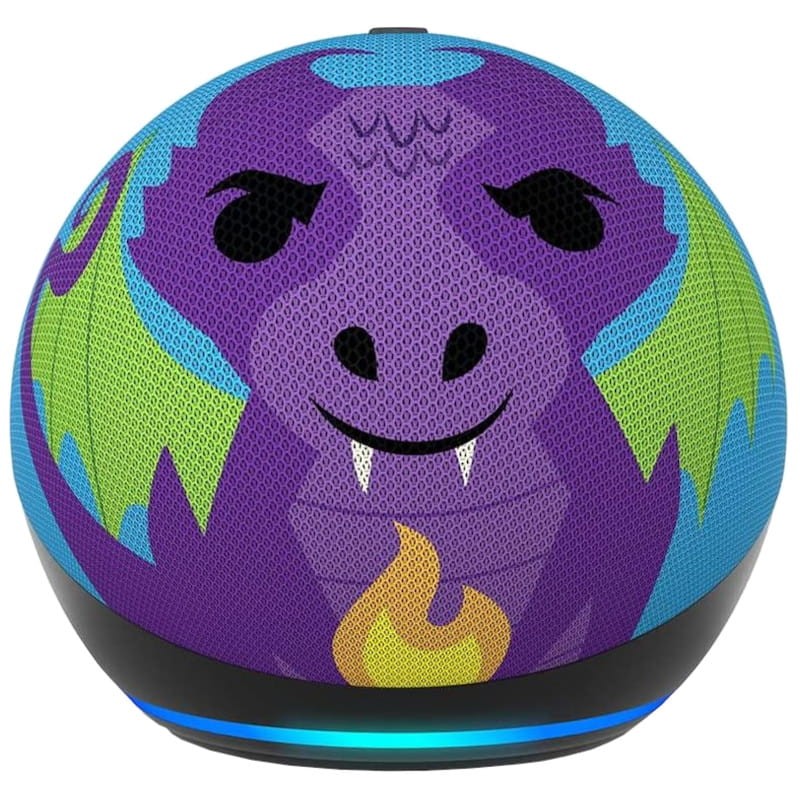 Esta versão do Amazon Echo Dot Kids pode simular respostas com a voz de um dragão, contar anedotas, fornecer informações e cantar canções relacionadas com este animal mitológico. Basta pedir, e as crianças terão um dragão na sala para brincarem com ele.