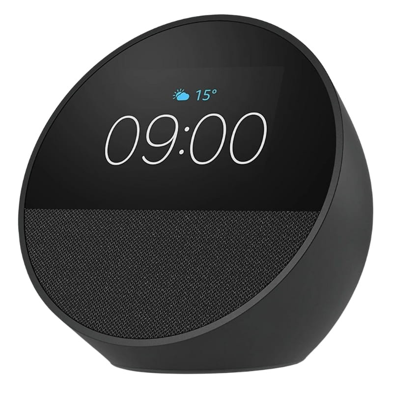 O novo Amazon Echo Spot é um despertador inteligente com design semiesférico moderno e um acabamento elegante. Inclui um ecrã tátil de 2,83'' que oferece várias opções de personalização para ser colocado em qualquer parte da casa. Tal como os outros dispositivos da família Echo da Amazon, este conta com assistente virtual Alexa, pelo que poderás utilizar o controlo por voz para definir alarmes, temporizadores, criar a tua própria rotina matinal, programar lembretes para o dia e muito mais. Além disso, inclui conectividade WiFi de banda dupla e Bluetooth, permitindo que possas ouvir a tua música, podcast e audiolivros com uma excelente qualidade de som, rico em matizes.