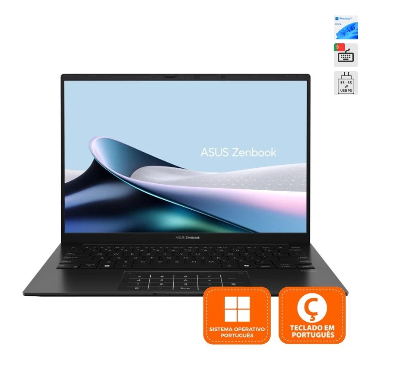 Eleve a sua experiência com o elegante e sofisticado ultraportátil Zenbook 14. O seu design fino e leve abriga o poder do mais recente processador AMD Ryzen™ AI 7 445 com IA, que faz as ferramentas de IA voarem, com a placa gráfica AMD Radeon™ 840M. Uma bateria de longa duração garante energia para todo o dia, e há um conjunto completo de portas de E/S para conectividade aprimorada. A sua dobradiça de 180° permite fácil partilha, e pode mergulhar num mundo de prazer sensorial com o vibrante ecrã ASUS Lumina e altifalantes superlineares de última geração, enquanto abraça o design ambientalmente consciente que exala ecoelegância.
