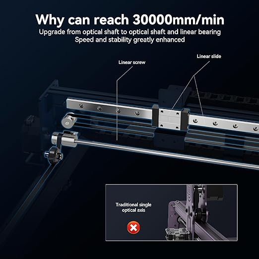 Estrutura de movimento totalmente nova: ao contrário das máquinas de pilha atómica anteriores, a pilha Atomstack A40 Pro adota um eixo X de guia linear com melhor estabilidade estrutural, tornando as linhas mais estáveis.