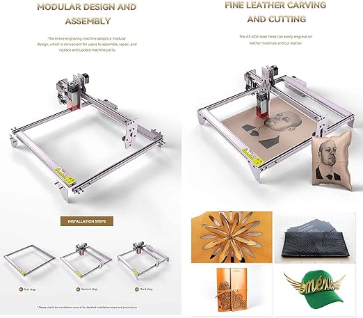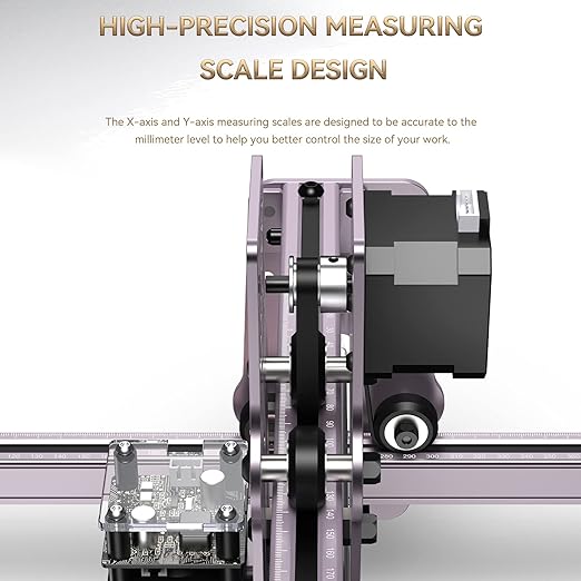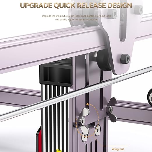 Eixo da linha de escala de precisão: o eixo X e o eixo Y contêm linhas de escala de precisão, o que é conveniente para medições rápidas de comprimento. O intervalo de gravação de área grande de 410 x 400 mm pode atender às suas diversas necessidades de gravação. Atualize a porca de borboleta, pode soltá-la e apertá-la sem ferramentas e ajustar rapidamente a altura do laser.