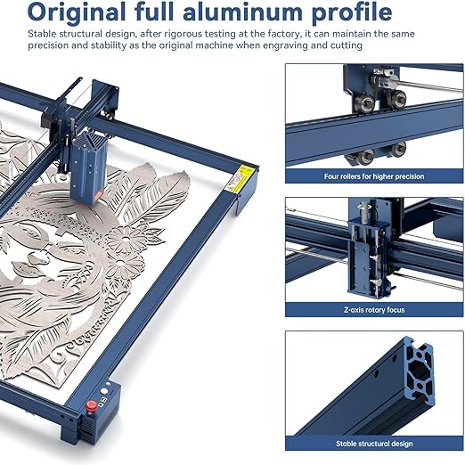 Perfis originais de alta precisão: o kit de expansão adota os perfis metálicos originais da mesma cor que a máquina de gravação da série A20 Pro, o que expande a área de gravação e garante a estabilidade e precisão da máquina de gravação.