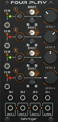Home INTERFACES Behringer Four Play Behringer Four Play SKU: 449508 103,00 € Desconto de %. IVA incluído. Comprar Contactar Adicionar à wishlist PARÂMETROS E ESPECIFICAÇÕESAdequabilidade TipoMódulo Eurorack Características ControlesBoost (4 x)ArpeggiatorNãoOsciladoresNão Propriedades ExposiçãoNãoCorPreto Entradas e saídas Saída do fone de ouvidoNãoEntradasCV Jack 3,5 mm, Jack 3,5 mm TS (8 x)SaídasJack 3,5mm TS (4 x)USBNão Pacote Conteúdo do pacoteManual Acessório Fornecimento de energia do Reino Unido/UE incluídoNão Fonte de alimentação Fonte de alimentaçãoEURORACKOperação da bateriaNão Dimensões e Peso Peso (g)140Altura (cm)12,9Largura (cm)6Profundidade (cm)4,1 Partilhar