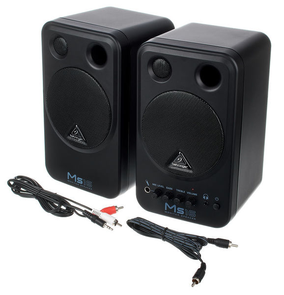 Os poderosos woofers de 4 "e tweeters de alta resolução são alimentados por dois amplificadores separados. Entradas RCA estéreo para placas de som, teclados, etc. podem ser usadas simultaneamente através da entrada para CD / MD player (3,5 mm TRS). A frente 6,3 mm a entrada do microfone pode ser mixada com um sinal estéreo.