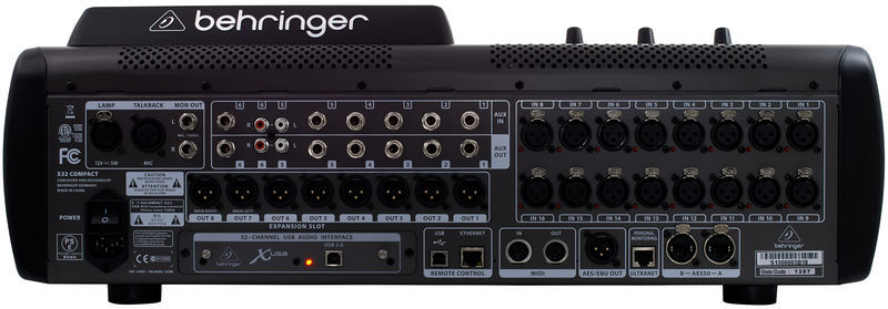 Mixer Digital 16 entradas de microfone / linha XLR 8 Returns Stereo FX 16 ônibus Mix 6 barramentos matriciais com inserção 6 grupos de Mute 8 grupos DCA 8 saídas XLR 6 AUX In: 6,3 mm Jack (opcionalmente 2 via RCA) 6 Saída AUX: conector de 6,3 mm (opcionalmente 2 via RCA) Saída digital estéreo AES / EBU 2 saídas de fone de ouvido: conector de 6,3 mm Monitor estéreo / saída da sala de controle com função dim Interface de áudio USB de 32 entradas / 32 saídas Fader motor 100 mm Visor colorido TFT de 7 " Display LCD por canal EQ paramétrico completo de 4 bandas por canal Atrasos ajustáveis em todos os canais Rack de efeitos virtuais com 8 slots FX Gravador USB estéreo integrado Controle remoto via ethernet Compatível com o sistema de monitoramento pessoal Behringer P-16 Implementação completa de MIDI Dimensões (A x L x P): 21,3 x 63,1 x 51,2 cm Peso: 15,5 kg Placas de expansão adequadas: Dante: Art. 334096, Madi: art. 337831, USB / FW: Art. 328417, registro USB: art. 371631 (todos não incluídos)