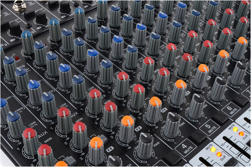 Mixer 22 canais 8 entradas de microfone com alimentação fantasma de +48 V e corte de graves de 75 Hz EQ de 3 bandas com banda média paramétrica, compressor e inserção em cada canal de microfone 4 entradas estéreo 3 retornos estéreo 3 caminhos AUX Interruptor mudo e LED de pico em cada canal Unidade interna de múltiplos efeitos de 24 bits com 16 predefinições 2 subgrupos com saída separada Fader de 60 mm Entrada e saída de 2 trilhas Saída XLR principal Placa de som USB embutida Fonte de alimentação interna Dimensões (A x L x P): 90 x 430 x 355 mm Peso: 4,78 kg Kit de rack de 19 "incluído Casos adequados: Artigo no. 268320 e o Artigo no. 481265 (ambos não incluídos) Saco adequado: Artigo no. 481192 (não incluído)