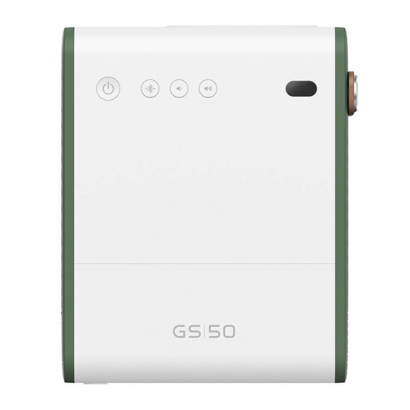 O BenQ GS50 é um projetor de alta definição equipado com a tecnologia DLP e uma resolução nativa de 1080p (1920x1080). Tem uma luminosidade de 500 lumens ANSI, a sua fonte luminosa é um LED com uma duração de até 30000 horas em modo econômico. O sistema de lentes inclui foco automático e zoom fixo, com uma relação de alcance de 1.21. Oferece várias opções de conectividade, incluindo um conector HDMI de tamanho completo e uma porta USB 2.0, e é compatível com vários padrões Wi-Fi. Além disso, possui um sistema operacional Android e dois altifalantes integrados com uma potência RMS estimada de 20 W.