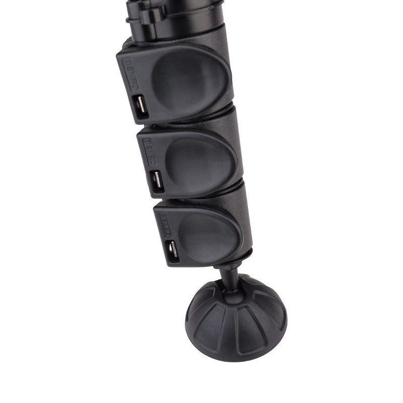 O leve monopé de aventura MAD38A Como o monopé é feito de alumínio, o peso foi limitado a apenas 620 gramas, sem comprometer a robustez. O deslizamento para dentro e para fora das quatro seções pode ser feito rapidamente graças ao bloqueio de grampo. Na parte inferior do MAD38A, um pé de borracha com uma junta esférica é encaixado para que você tenha o máximo de aderência em quase todas as superfícies.