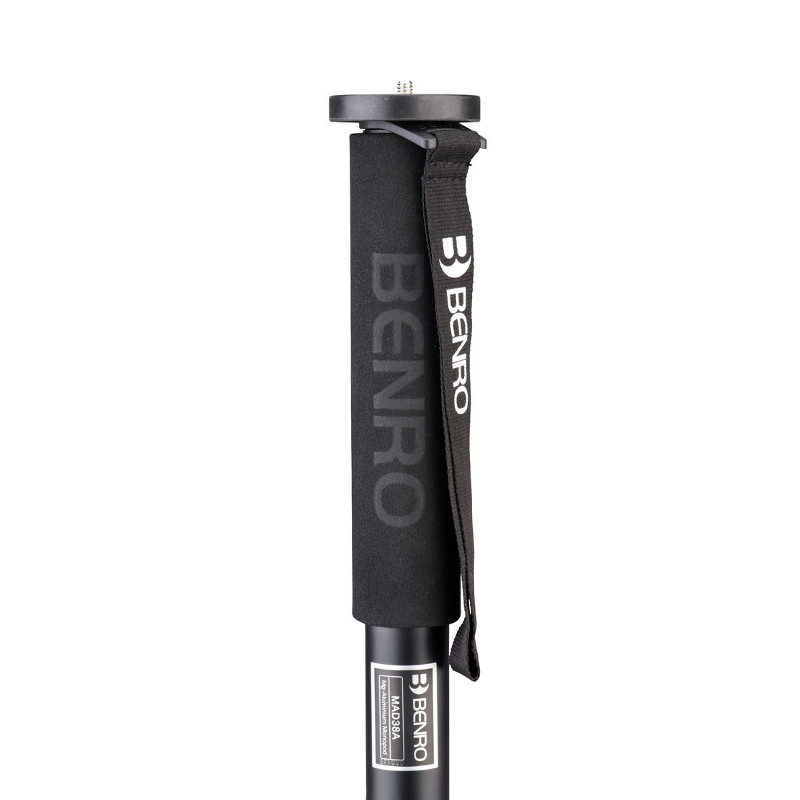 Benro Adventure Monopé MAD38A O Monopé Benro Adventure MAD38A é um ótimo companheiro para o fotógrafo ativo que gosta de usar lentes telefoto e não quer perder tempo montando um tripé. O monopé MAD38A é feito de alumínio fresado, tem comprimento variável de 52,5 a 159,5 centímetros e pode carregar até 16 quilos.
