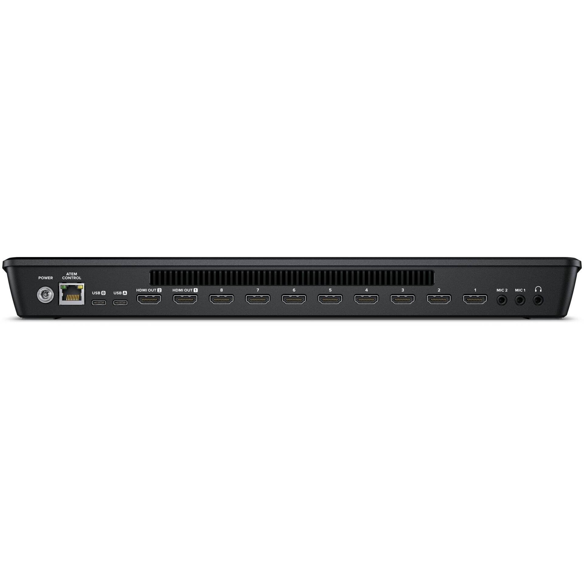 Monitoramento de várias visualizações: configurável para 16, 13, 10, 7 ou 4 visualizações, incluindo programa, visualização, 8 entradas HDMI, SuperSource, alimentação limpa, reprodutor de mídia, status de streaming, status de gravação e medidor de nível de áudio