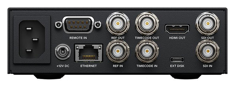 Blackmagic Design HyperDeck Studio HD Mini; deck de transmissão para gravação e reprodução de arquivos H.264, ProRes ou DNxHD em formatos SD / HD até 1080p / 60 para cartões SD / UHS-II ou drives USB externos; Entradas e saídas 3G-SDI; Saída HDMI; slots de cartão SD duplos permitem a troca de cartão em tempo real; geradores de relógio e código de tempo integrados; controles do painel frontal; atua como uma webcam quando conectada a um computador via porta USB; pode ser usado com qualquer software de vídeo; conexões: entradas de vídeo SDI: 1; Saídas de vídeo SDI: 1; Taxas SDI: 270 Mbit, 1,5 G, 3 G; Saídas de vídeo HDMI: 1; conexões de timecode: 1 entrada BNC, 1 saída BNC; conexões de referência: 1 entrada BNC, 1 saída BNC, tri-sync ou black burst; Entradas e saídas de áudio SDI: 16 canais de áudio integrados. Saídas: 16 canais de áudio integrados; Saídas de áudio HDMI: 8 canais de áudio integrados; Controle remoto: 1 entrada RS-422; Interface do computador: 1 USB-C-3. 0 (até 5 Gb / s) para gravação em unidades externas, saída de webcam, configuração de software e atualizações; Padrões:; Frequência de amostragem de vídeo: 4: 2: 2 YUV; Precisão de cor: 10 bits; Espaços de cores: Rec. 601, Rec. 709, Rec. 2020; Suporte HDR: Hybrid Log-Gamma, ST2084 300, ST2084 500, ST2084 800, ST2084 1000, ST2084 2000, ST2084 4000, ST2084; Suporte multirate: detecção automática de SD e HD; Mídia: 2 slots de cartão SD, 1 porta de expansão USB-C 3. 0 para gravação externa em SD, HD e 2K DCI; Tipo de mídia: cartões SD UHS-I e UHS-II; Formato de mídia de armazenamento: formatos de mídia para sistemas de arquivos ExFAT (Windows / Mac) ou HFS + (Mac); Codecs com suporte:; ProRes HQ QuickTime, ProRes 422 QuickTime, ProRes LT QuickTime, ProRes Proxy QuickTime para todos os formatos até 1080p / 60; DNxHD 220x, DNxHD 220x MXF, DNxHD 145, DNxHD 145 MXF, DNxHD 45, DNxHD 45 MXF para formatos HD 720p e 1080p até 60 fps; H. 264 SDI 4: 2: 2 10 bits, H.264 Alto 4: 2: 0 8 bits, H.264 Médio 4: 2: 0 8 bits e H.264 Baixo 4: 2: 0 8 bits para todos progressivos digitalize formatos de até 1080p / 60; controles :; painel de controle integrado: 8 botões para transporte e controle de dispositivo com controle deslizante de busca e display colorido de 2,2 "; controles externos: controle de deck RS-422, início / parada SDI, execução de código de tempo. Blackmagic HyperDeck Ethernet Protocolo incluído Suporta uploads de arquivos remotos via FTP ; software incluído :; Blackmagic OS; Blackmagic HyperDeck Setup; atualizações de software do produto carregadas na inicialização ou via Blackmagic HyperDeck Setup via porta USB; sistemas operacionais compatíveis :; Mac Catalina 10.15, Mac Big Sur 11. 1 ou superior; Windows 10, 64 bits; Fonte de alimentação :; 1 fonte de alimentação CA embutida para 100 240 V, 50/60 Hz; 1 fonte de alimentação de 12 V CC com plugue oco de 5,5 mm para fonte de alimentação externa ou operação com bateria (cabo de alimentação não incluído); Dimensões: 140 x 177 x 44,2 mm (1 unidade de altura, largura de um terço do rack); Peso: 820 g; Observação: nenhuma fonte HDMI protegida contra cópia pode ser gravada por meio da entrada HDMI. Sempre se informe sobre direitos autorais antes de gravar ou distribuir conteúdo