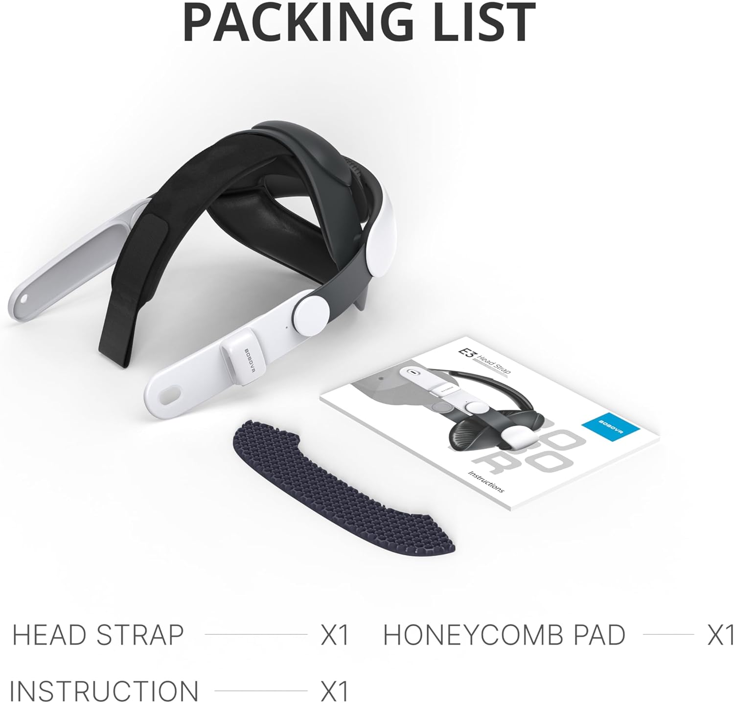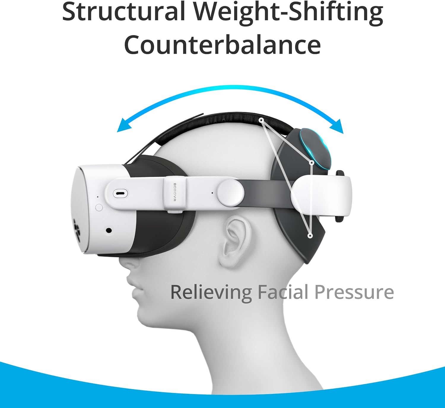 BOBOVR E3 Correia de cabeça, compatível com Meta Quest 3/3S, sistema de equilíbrio traseiro, bloco de peso ajustável de 70 g