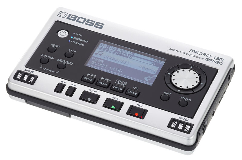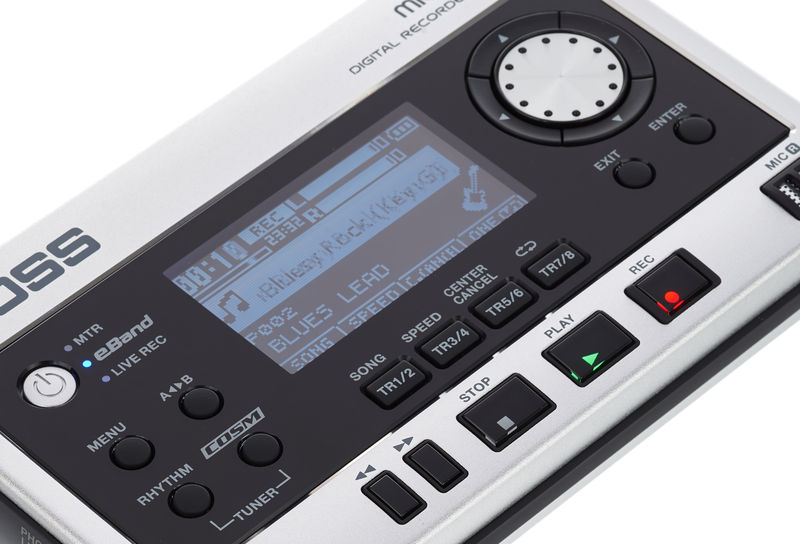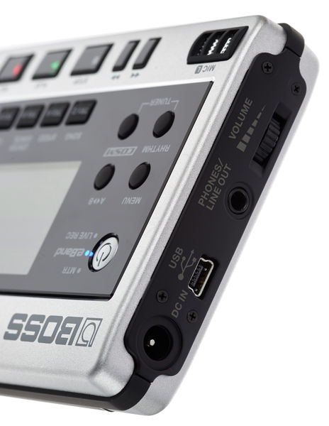 Gravador digital Três modos: Estúdio Digital com 8 trilhas, Gravador de campo estéreo e Jam Station "eBand" Grava diretamente em cartões SD (até 32 GB) Microfones condensadores de qualidade incorporada para gravação estéreo 64 faixas no total e 8 faixas de reprodução simultânea + faixa de bateria estéreo com uma grande variedade de Grooves Função eBand para praticar e tocar: Grande biblioteca de padrões de ritmo e monitoramento integrados Muitas funções para extrair audição e praticar solos (Tempo Shift, Pitch Shift, Cancelador de centro etc.) Sons para guitarra e baixo (mais de 40 amp modelagens e efeitos Boss do GT-10 e GT-10B) Efeitos vocais dos mais vendidos do VE-20 (Harmonista, Correção de afinação, etc.) + Efeitos de masterização Pode ser usado como uma interface de áudio USB com efeitos embutidos Conexões: Guitar / Mic IN (entrada), Line IN (mini entrada estéreo), Phones / Line OUT (mini entrada estéreo), USB (Mini-B), alimentação Fonte de alimentação: DC 9 V: adaptador CA (não incluído, artigo N °: 102842) Pilhas alcalinas (AA, LR6) x 2 pilhas Ni-MH (AA, HR6) x 2 ou USB Dimensões (L x P x A): 138 x 86 x 22 mm Peso: 140 g
