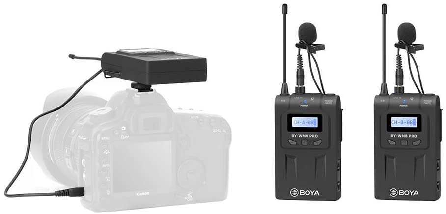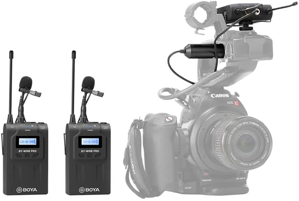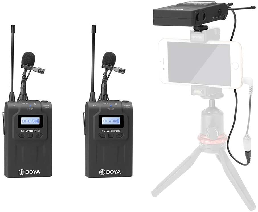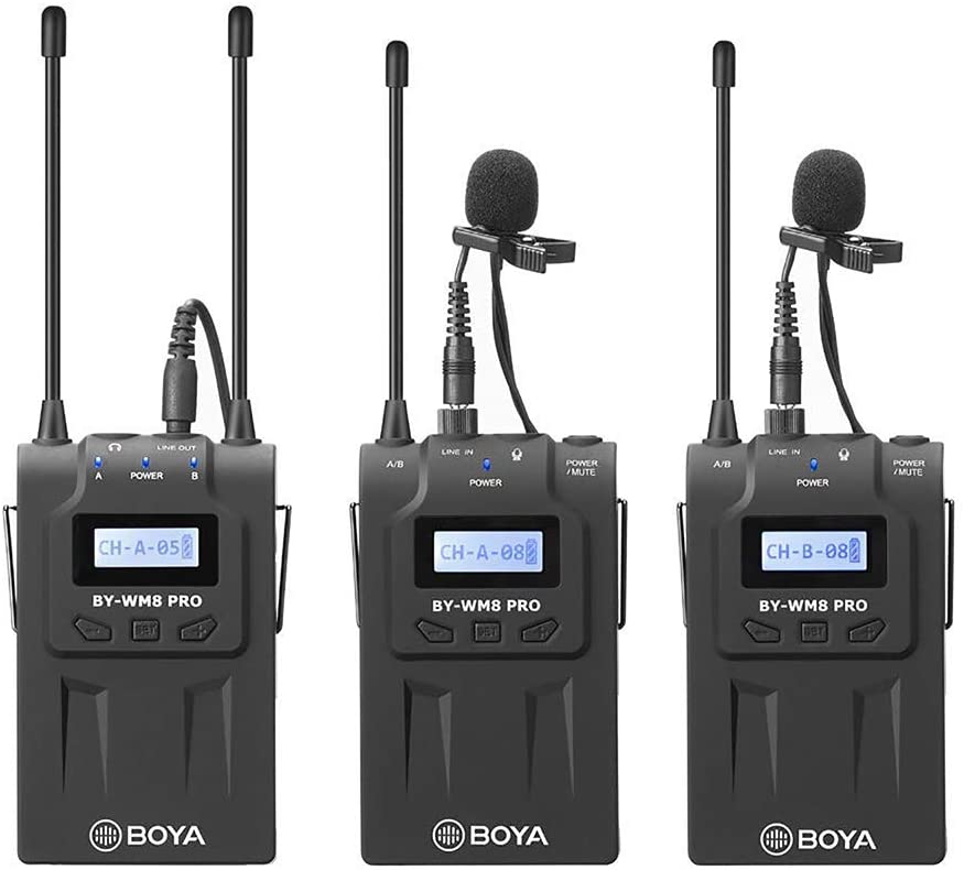 O BOYA BY-WM8 Pro-K2 é um sistema de microfone sem fio de canal duplo UHF para captura de áudio com dois assuntos, apresentando uma tela LCD de fácil leitura, largura de banda RF, sintetização PLL sintetizada e circuito de compressão digital.
