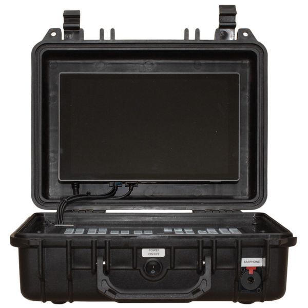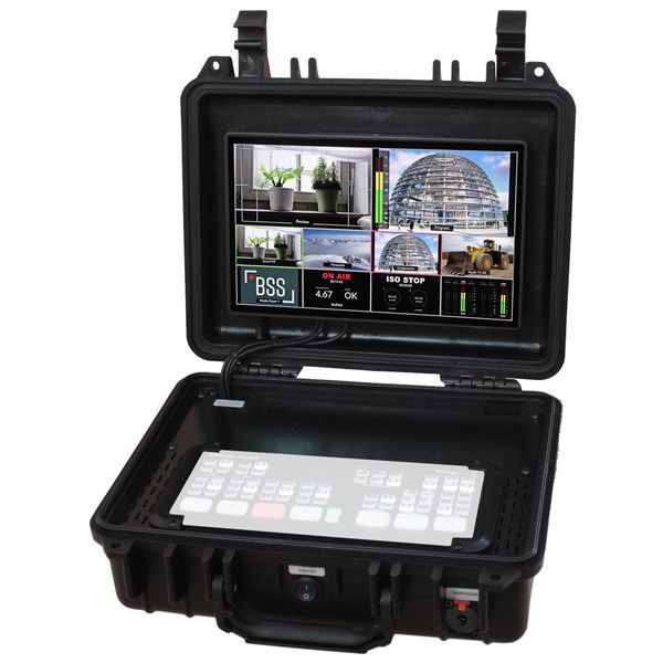 Para mixers de vídeo ISO Blackmagic Design ATEM Mini / ATEM Mini Pro / ATEM Mini Pro (mixer de vídeo não incluído, ainda deve ser instalado pelo cliente) Configuração rápida - coloque, abra e ligue Não há necessidade de conectar o monitor com conexões de dados e energia Uma unidade de fonte de alimentação integrada alimenta todos os componentes Todas as conexões de cabos são facilmente acessíveis nos dois lados do gabinete ATEM Mini e levam para o exterior. Um interruptor liga/desliga para todos os componentes Ventilador para operação segura mesmo em clima quente (controlado por termostato PWM) Tomada de carregamento USB-A para dispositivos acessórios, como smartphones ou tablets Todos os componentes são protegidos no case rígido e seguros para transporte Valores de conexão: 230V/50Hz Potência: 12V / 5A / 60W Dimensões: 330 x 280 x 120 mm Peso: aprox. 3,8kg Inclui. Cabo de conexão de 230 V (1,80 m) com plugue de contato de segurança (CEE7/7) e 2 cabos adaptadores XLR de 3 pólos - conector estéreo de 3,5 mm (0,7 m)