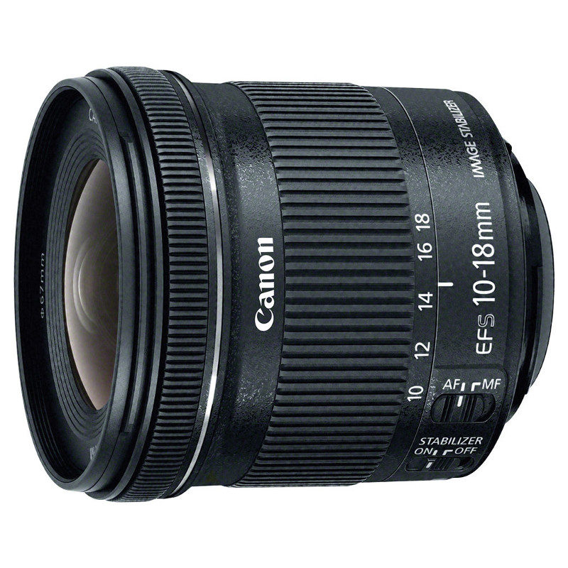 A Canon EF-S 10-18mm f / 4.5-5.6 IS STM é uma lente zoom grande angular projetado especificamente para DSLRs EOS APS-C, onde ele fornece uma gama de comprimento focal equivalente a 35mm de 16-28.8mm. O design óptico incorpora um elemento asférico, um UD (Ultra-baixa dispersão) elemento, e um elemento de grande diâmetro para minimizar as aberrações cromáticas em toda a faixa de zoom e contribuir para a nitidez da imagem notável e clareza. Revestimentos das lentes melhoradas também foram aplicados a elementos de lentes para minimizar lens flare e fantasmas para manter o contraste da imagem e cor neutralidade.