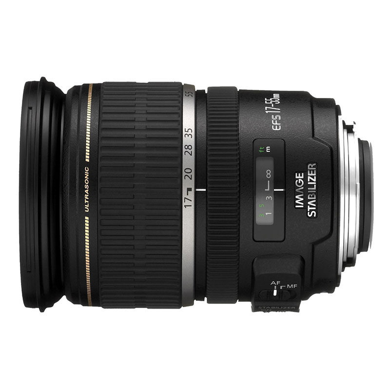 Canon EF-S 17-55mm f/2.8 É lente USM A Canon EF-S 17-55 mm f/2.8 IS USM é uma lente com abertura fixa de f/2.8 sobre toda a faixa de zoom. A versátil distância focal de 17-55mm é adequada para muitos assuntos, desde grande angular até uma curta gama telefoto. A abertura de f/2.8 é uma dádiva de Deus em situações de pouca luz. A grande abertura máxima e a abertura circular garantem uma pequena profundidade de campo e um belo fundo desfocado para retratos, por exemplo. Um revestimento especial nos elementos da lente também reduz reflexos e brilho.