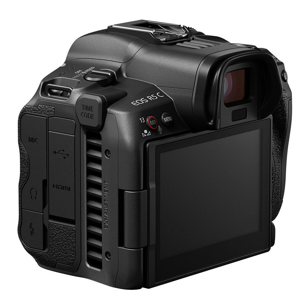 O compacto e leve Canon R5 C possui um visor OLED de alta resolução, uma tela LCD dobrável de 3,2 polegadas com alto brilho e 13 botões auto-atribuíveis. O sistema de resfriamento ativo permite filmagens a longo prazo, enquanto o corpo de liga de magnésio garante durabilidade profissional.