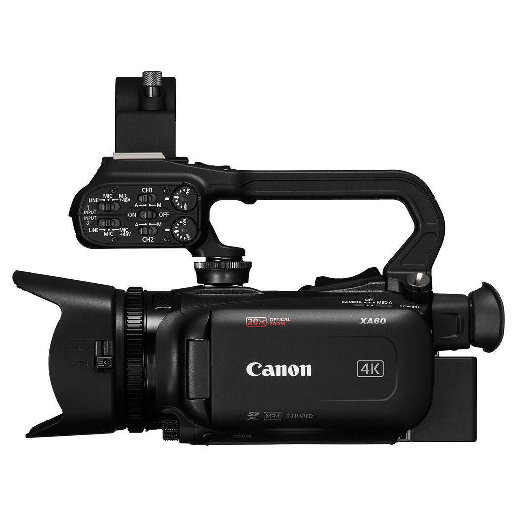A câmera é capaz de produzir vídeo 4:2:2 de até 1920 x 1080p de 10 bits a 59,94 fps através da saída mini-HDMI. Em termos de áudio, a XA60 possui até quatro canais de áudio LPCM no modo 720p com níveis de gravação manual/automática, duas entradas XLR com alimentação fantasma e uma mini entrada estéreo de 3,5 mm. A filmadora possui um microfone estéreo embutido e um fone de ouvido.