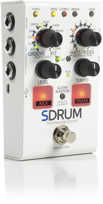 partes 12 chapéus/passeios diferentes instrumentos/voicings Amplificadores dedicados amp e saídas de mixer estéreo Kick/Snare pads para tocar em uma batida