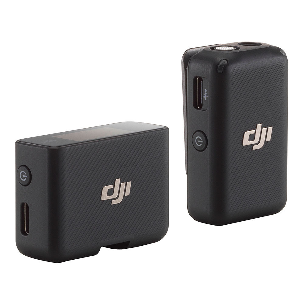 O sistema DJI Mic 1V1 é carregado via USB. Um cabo de carregamento USB está incluído para este fim. Totalmente carregado, o transmissor tem uma vida útil da bateria de 5,5 horas e o receptor tem uma vida útil da bateria de 5 horas.