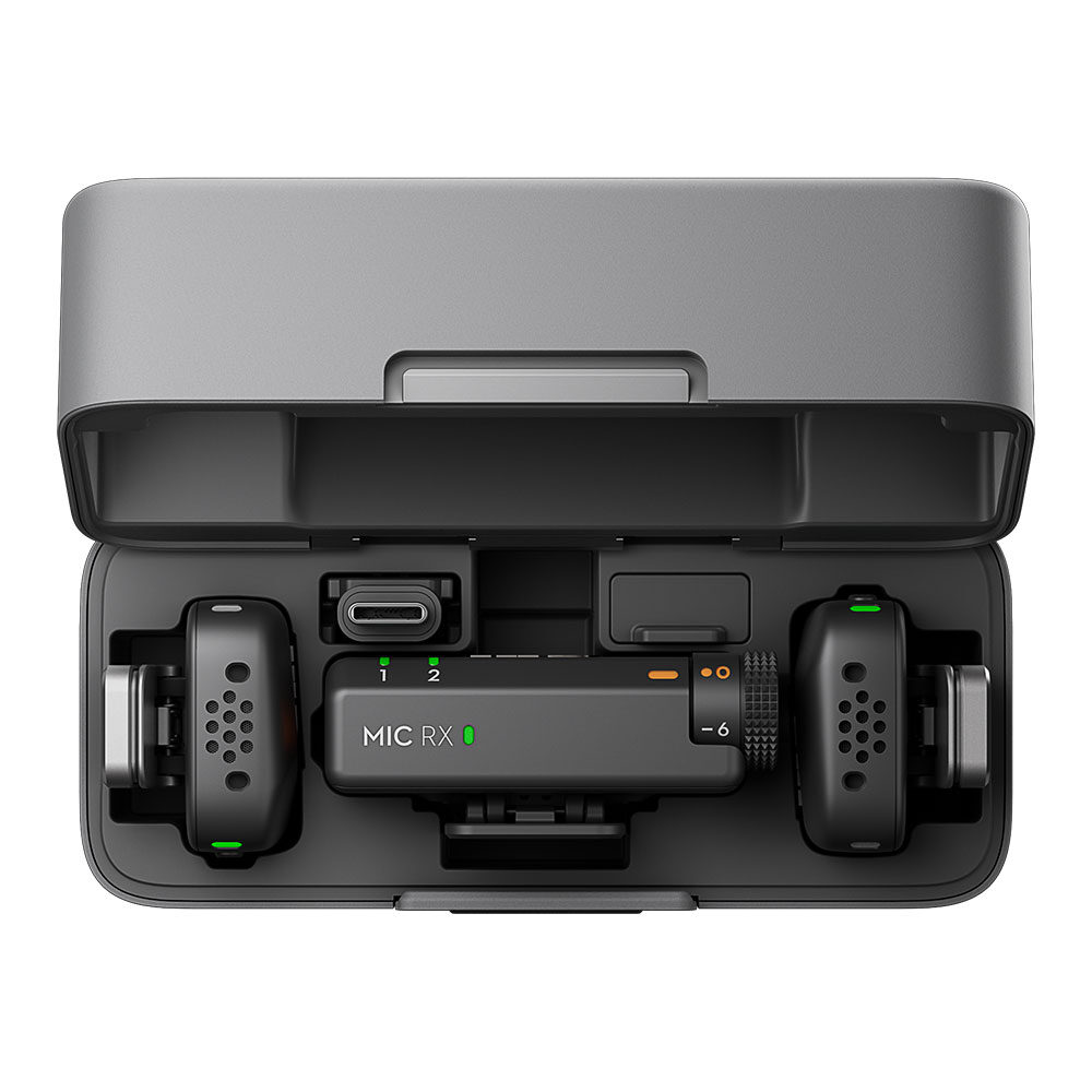 O Mic Mini funciona diretamente com dispositivos DJI OsmoAudio, como a linha Osmo Action e Pocket, sem a necessidade de um receptor. O receptor é compatível com câmeras, smartphones, tablets e computadores e suporta carregamento durante o uso.