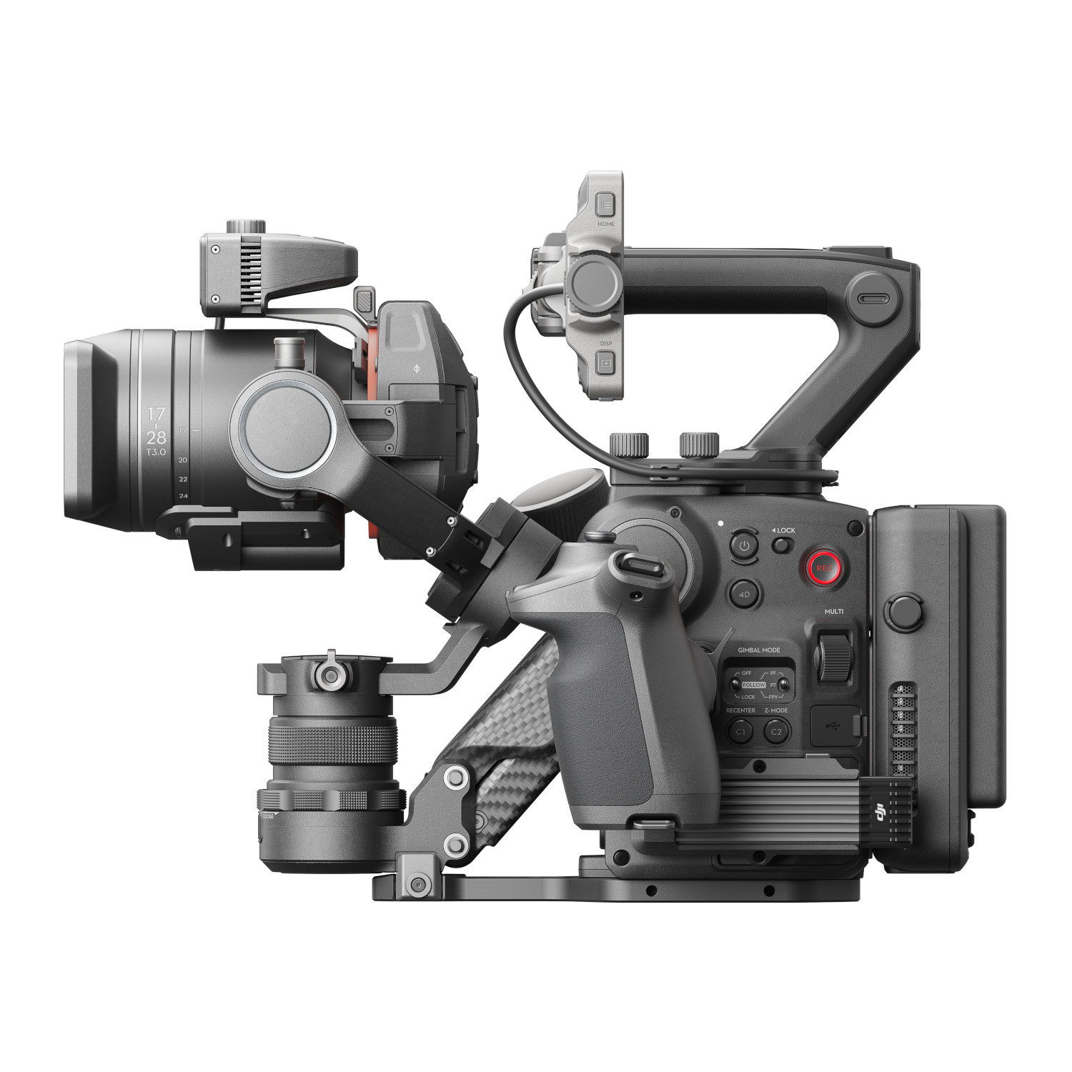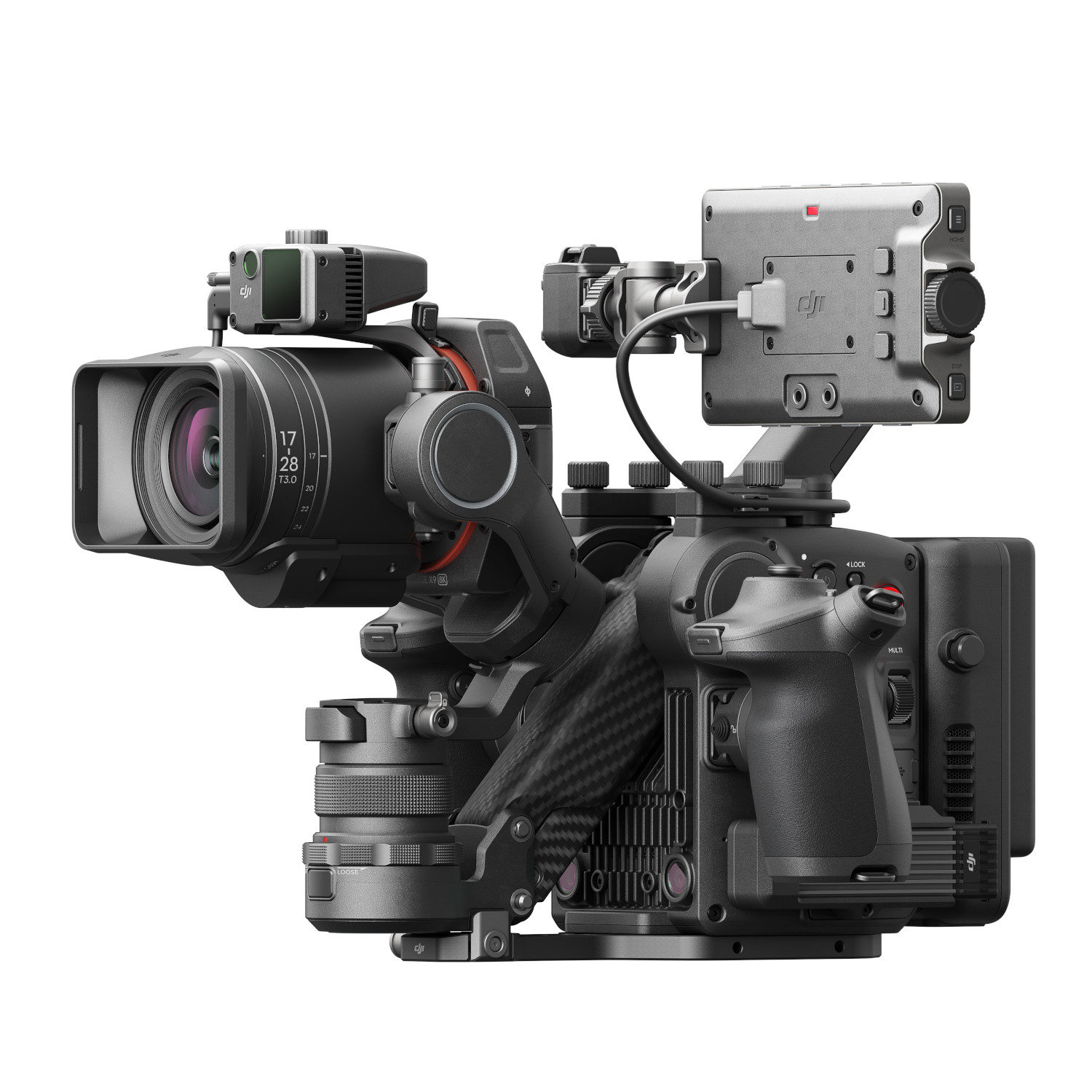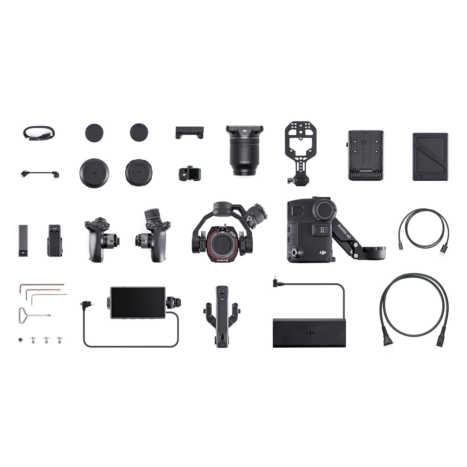 Essa combinação inclui a câmera de vídeo full-frame Zenmuse X9-8K, um gimbal de 3 eixos e uma lente DJI DL PZ 17-28mm T3.0 ASPH, além de uma variedade de componentes modulares de monitor, foco e controle. Além disso, o combo inclui um telêmetro LiDAR, um ProSSD de 1 TB, uma bateria TB50, um hub de carregamento e alças esquerda e direita.