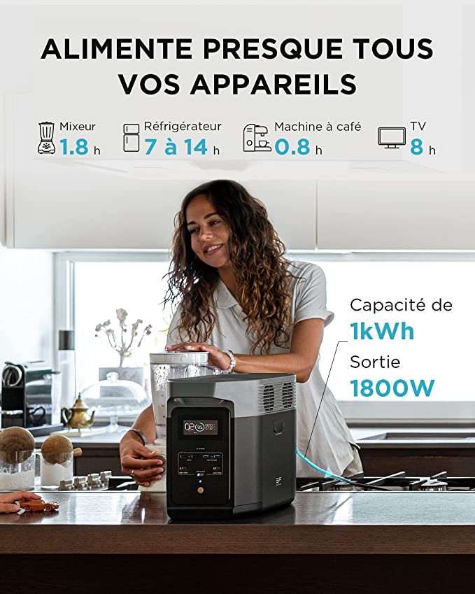 Fornece eletricidade para quase qualquer coisa: as baterias portáteis evoluíram muito hoje. Alimente todos os seus eletrodomésticos com uma potência de 1800 W, que corresponde à altura dos geradores de exterior, sem fumo nem ruído. Com 15 tomadas de energia e grande potência, pode alimentar 90% dos seus dispositivos.