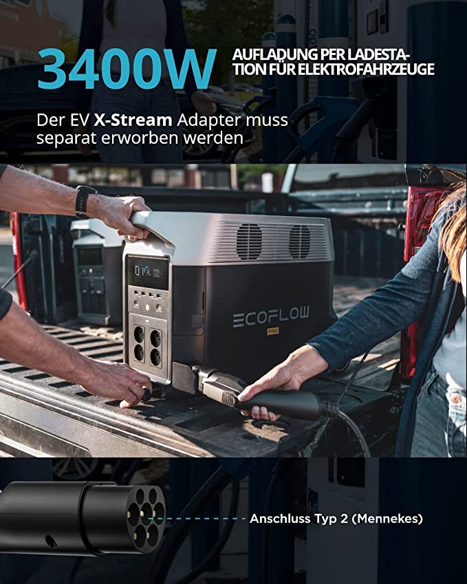 5 métodos de carregamento: Escolha entre a estação de carregamento para o veículo elétrico, painéis solares, tomadas de parede, o gerador inteligente para exteriores ou uma tomada do veículo. Combina métodos diferentes para alcançar 6500 W (com uma bateria adicional). Mais rápido do que qualquer outro gerador solar.