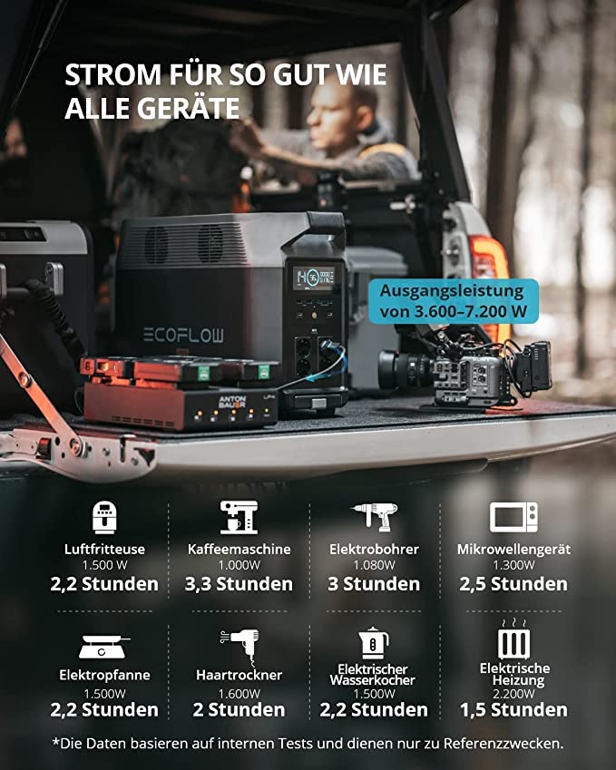 Saída incomparável de 3600 W: Um gerador de energia para os seus dispositivos durante um apagão. Fornece energia a dispositivos de 4500 W com o X-Boost. Suficiente para radiadores ou unidades de ar condicionado de janela.