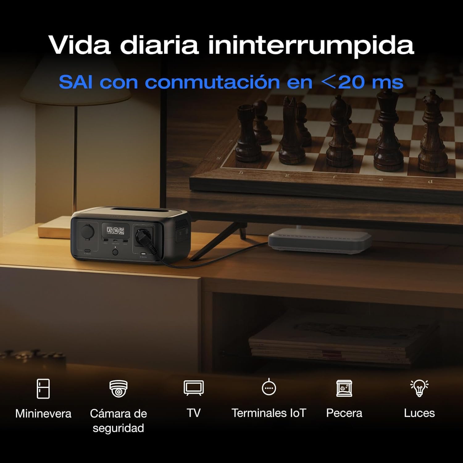[Vida diária sem interrupções] Solução SAI com comutação em <20 ms para aproveitar a sua vida diária sem interrupções. Quando ocorrer um corte no fornecimento de energia elétrica, a sua tomada CA mudará para o fornecimento RIVER 3 em apenas 20 ms. Mantém os eletrodomésticos domésticos domésticos domésticos em funcionamento, mantém a conservação dos alimentos, a segurança e a comunicação.