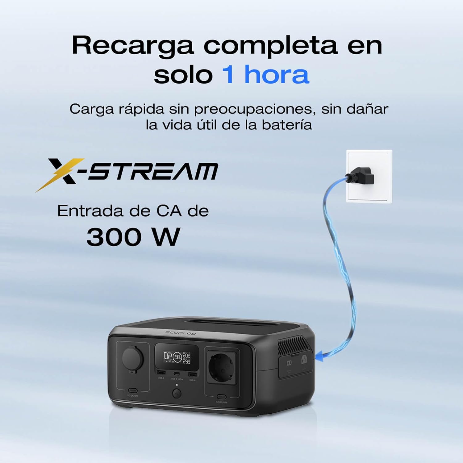 [Opções de carregamento versáteis] Graças à tecnologia X-Stream, o RIVER 3 pode ser rapidamente carregado com CA de 0 a 100% em 1 hora sem danificar a bateria. O RIVER 3 também suporta carregamento solar, através de veículos e geradores.