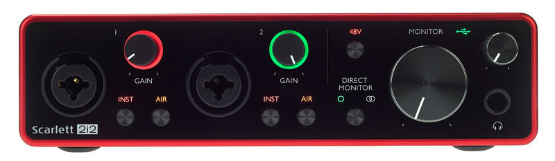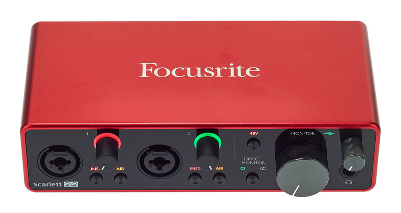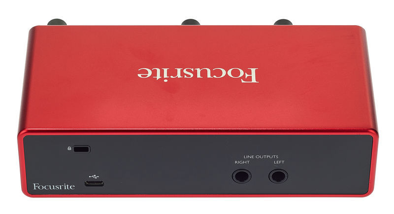 Inclui cabo USB (tipo C a A) e Ableton Live Lite, Pro Tools First, suíte de plug-in Focusrite Red 2 e Red 3, pacote Softube Time & Tone e uma ferramenta de software de 4 teclas viciantes de áudio XLN de sua escolha