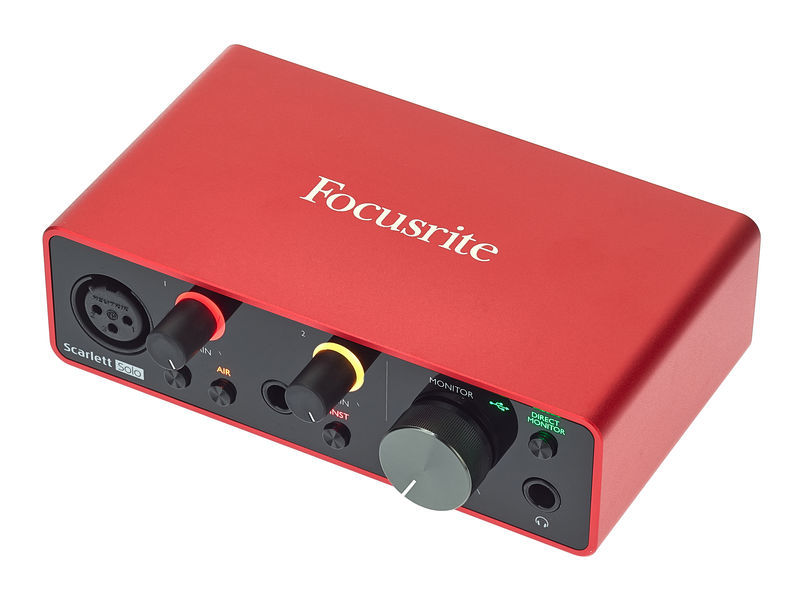 Conjunto de gravação de interface de áudio USB Consiste em interface de áudio Scarlett Solo, microfone condensador CM25 MkIII, fone de ouvido de estúdio HP60 MkIII e um cabo XLR de 3 metros Interface de áudio USB 2.0 de 2 canais com conexão USB-C 24 bits / 192 kHz 1 x pré-amplificador de microfone Scarlett Phantom power +48 V Função de ar comutável 1 entrada de microfone: XLR 1 entrada de linha / instrumento: conector de 6,3 mm 2 saídas de linha: conector de 6,3 mm balanceado Saída de fone de ouvido estéreo: conector de 6,3 mm Conexão USB-C Para PC / Mac Alimentado por barramento USB Dimensões (L x A x P): 143,5 x 43,5 x 95,8 mm Peso: 0,32 kg Inclui cabo USB (Tipo C a A) e Ableton Live Lite, Pro Tools First, Focusrite Red 2 & Red 3 Plug-in Suite, Softube Time & Tone Bundle e uma ferramenta de software de 4 XLN Audio Addictive Keys de sua escolha
