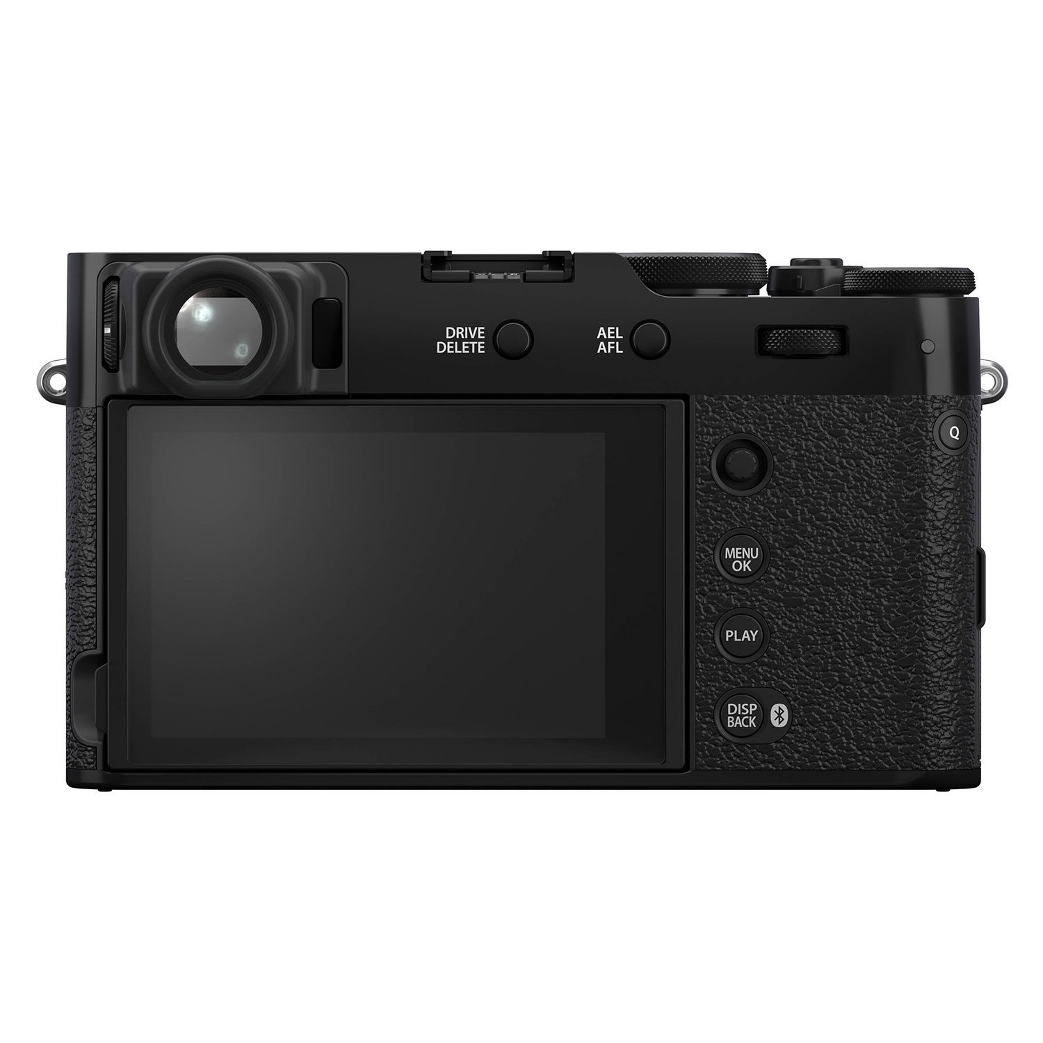 O X100VI mantém o design compacto de seu antecessor, o X100V, mas adiciona apenas 42,5 gramas para um peso total de 471 gramas. A tela sensível ao toque inclinável de 3 polegadas com 1,62 m de ponto oferece operação e exibição intuitivas. O design robusto é à prova de intempéries em combinação com o anel adaptador AR-X100 opcional e o anel de proteção à prova de intempéries. A placa superior possui botões e alavancas de travamento para controle rápido e fácil das configurações de exposição, incluindo velocidade do obturador dedicada e botões de compensação de exposição. Os botões de função dianteiros e traseiros apresentam uma função push para melhorar a usabilidade e a seleção de configurações. Um joystick na parte traseira fornece seleção intuitiva de pontos AF, navegação no menu e exibição de imagens.