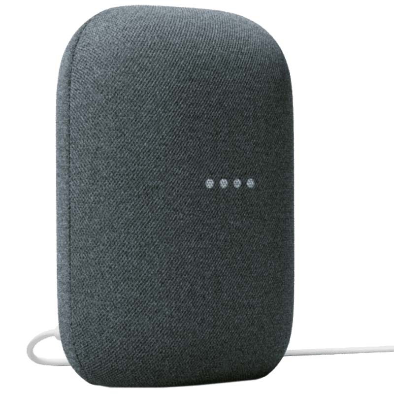 Especificações Google Nest Audio Preto Carvão: Dimensões e pesoDimensõesAltura: 175 mm Largura: 124 mm Profundidade: 78 mm Cabo de alimentação: 1,5 m PesoDispositivo: 1,2 kg Cores e materiaisCor: Carbono MateriaisA caixa está feita de 70% plástico reciclado Conectividade802.11b/g/n/ac (2.4 GHz/5 GHz) Wi-Fi Bluetooth 5.0 Chromecast integrado Alimentação e portasFonte de alimentação: adaptador de alimentação de 30 W e 24 V Portas: conector DC Altifalantes e microfonesWoofer de 75 mm e tweeter de 19 mm 3 microfones de longo alcance Interruptor para silenciar o microfone de 2 etapas (hardware silenciado)
