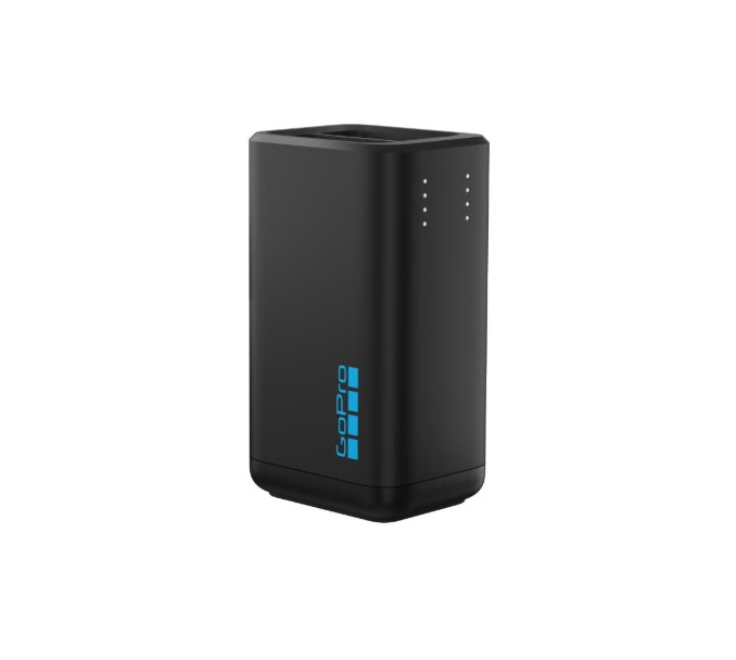 O carregador de bateria dupla GoPro para a câmera de ação Gopro MAX2 é a forma mais rápida de carregar simultaneamente duas baterias Enduro da câmera de ação da GoPro MAX2. Graças aos indicadores duplos de LED, você pode ver o quão cheias as baterias estão em incrementos de 25%.