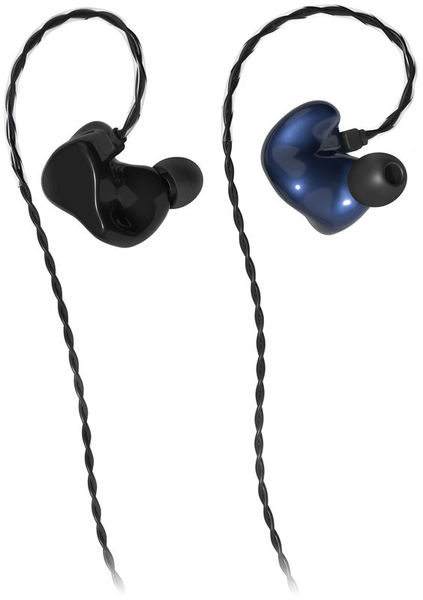 Cor do fone de ouvido: Caixa preta com parte da orelha interna azul metálica