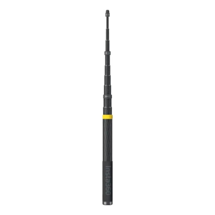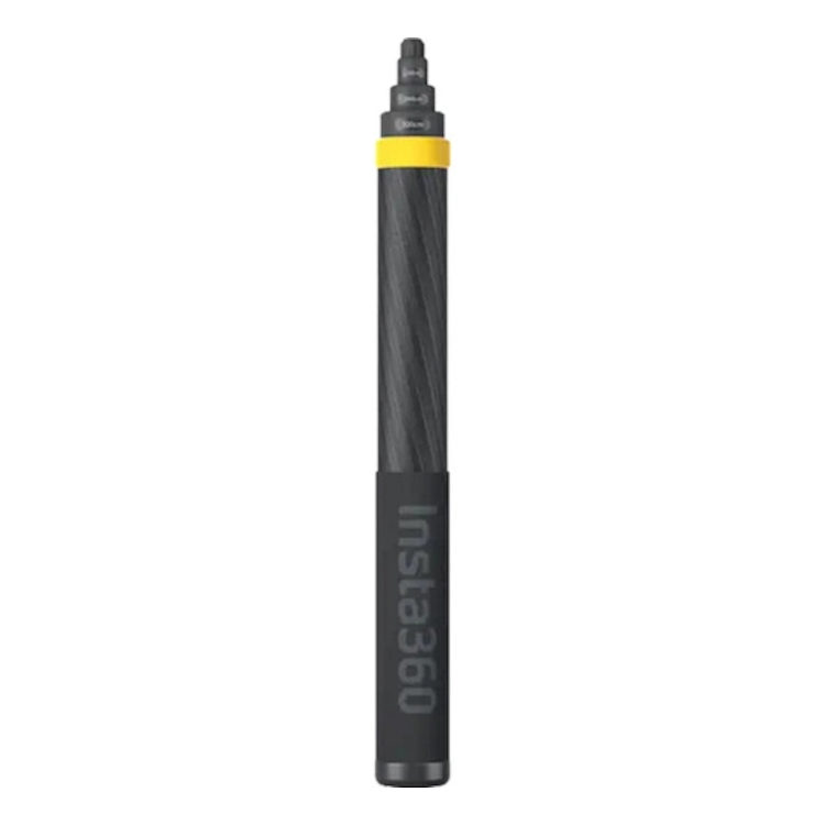 Compatível com todas as câmeras Insta360 Alcance telescópico de 36 a 300 cm redesenhado Design em fibra de carbono Pesa apenas 365 gramas Parafuso de montagem 1/4"-20 Rosca inferior 1/4"-20 Sistema de Travamento de Rotação Pega de borracha