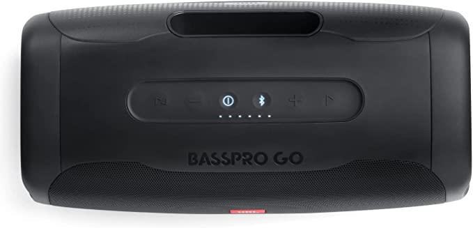 O BASSPRO Go Plus é resistente a salpicos para uso ao ar livre. A Harman também levou o altifalante JBL aos seus limites nos testes. A JBL submeteu o altifalante JBL a frio, calor e impactos extremos e fez funcionar com potência total durante dias