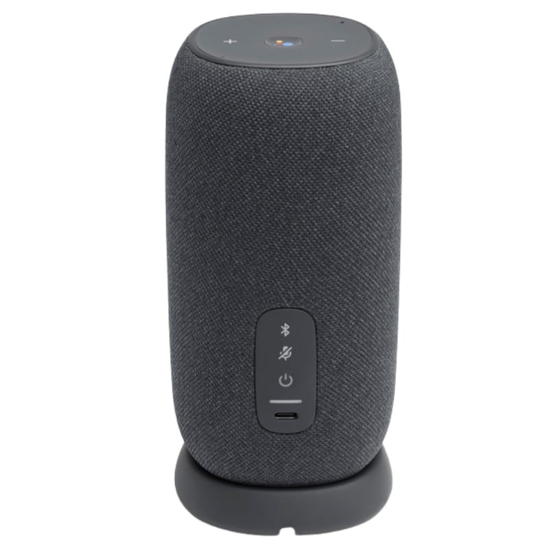 Conectividade WiFi + Bluetooth v4.2 - Som de 360° - Potência de 20W - Certificação IPX7 - Google Assistant - Até 8 horas de bateria - Inclui base de carregamento