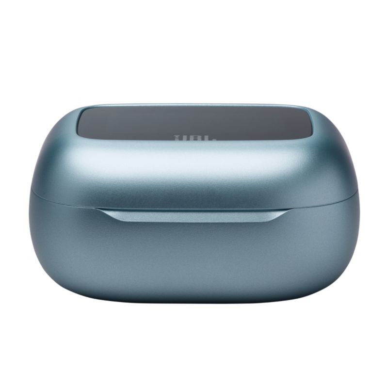 O estojo de carregamento dispõe de um ecrã táctil que facilita o controlo das funções de som. Com esta interface, o utilizador pode ajustar o volume, mudar de faixa e gerir chamadas sem necessidade de utilizar a aplicação da JBL.