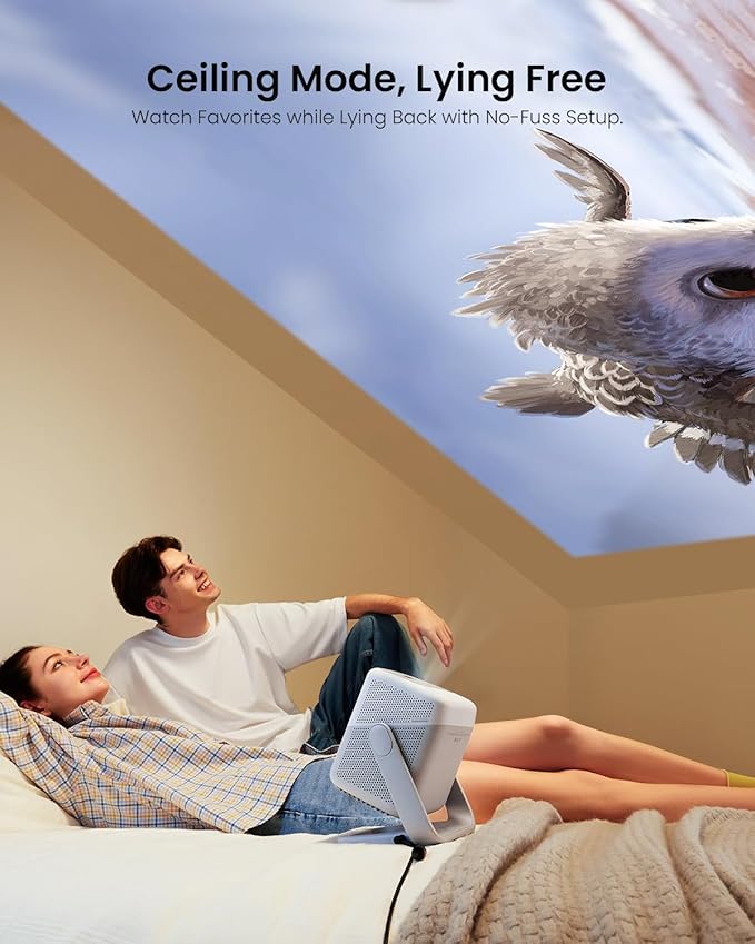 Cinema em casa portátil estabilizador móvel: o projetor inteligente portátil N1 simplifica a projeção de forma simples. O estabilizador rotativo a 127° permite uma colocação flexível no chão, na parede ou no teto. A correção trapezoidal inteligente e o foco automático garantem imagens nítidas em tempo real. Chega de posições fixas ou tripés volumosos, liberdade para ver filmes em interiores, no jardim ou acampar com a caixa EPP adequada.