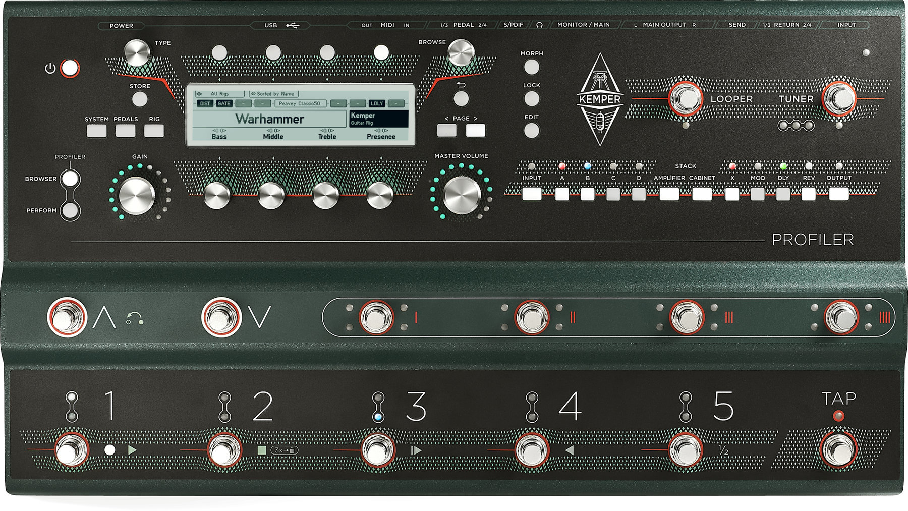 O KEMPER PROFILER Stage é a solução all-in-one para guitarra elétrica e baixo. É um processador de vários efeitos, pré-amp. Devido à sua alta conectividade, ele se encaixa perfeitamente em qualquer situação, não importa se você está tocando ao vivo, em casa ou no estúdio. Ele é fornecido com centenas dos melhores amplificadores do mundo, com PROFILEs tomados em perfeitas condições em estúdios profissionais em todo o mundo. O PROFILER permite capturar o DNA sônico de qualquer amplificador com a pressão de um único botão - uma tecnologia única, chamada PROFILING, inventada por KEMPER. Assoalho com um incl. PROFILER completo com sistema de comutação de nível remoto integrado. A solução perfeita para salas de ensaio, pequenos passeios e estúdios. O design all-in-one conveniente pode ser estendido com até quatro pedais para controle em tempo real, e oferece dois loops FX. Conecta-se em estéreo ao PA e possui monitoramento mono ou estéreo com cabines de guitarra. Leve com construção ultra-robusta e alta durabilidade.