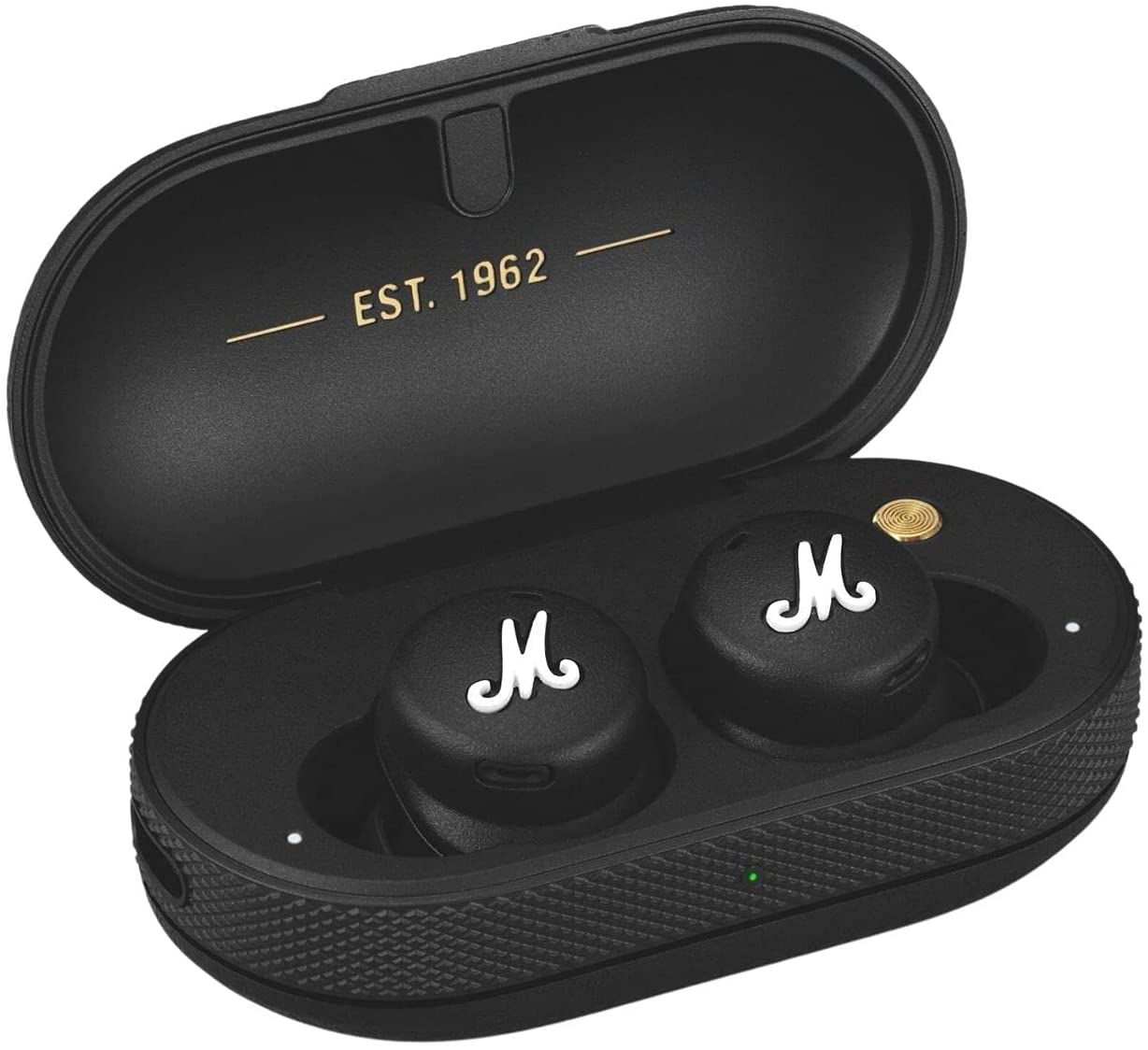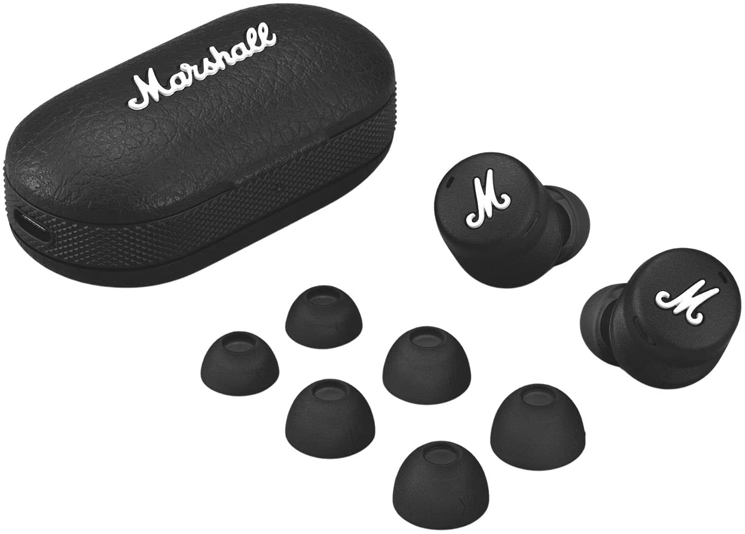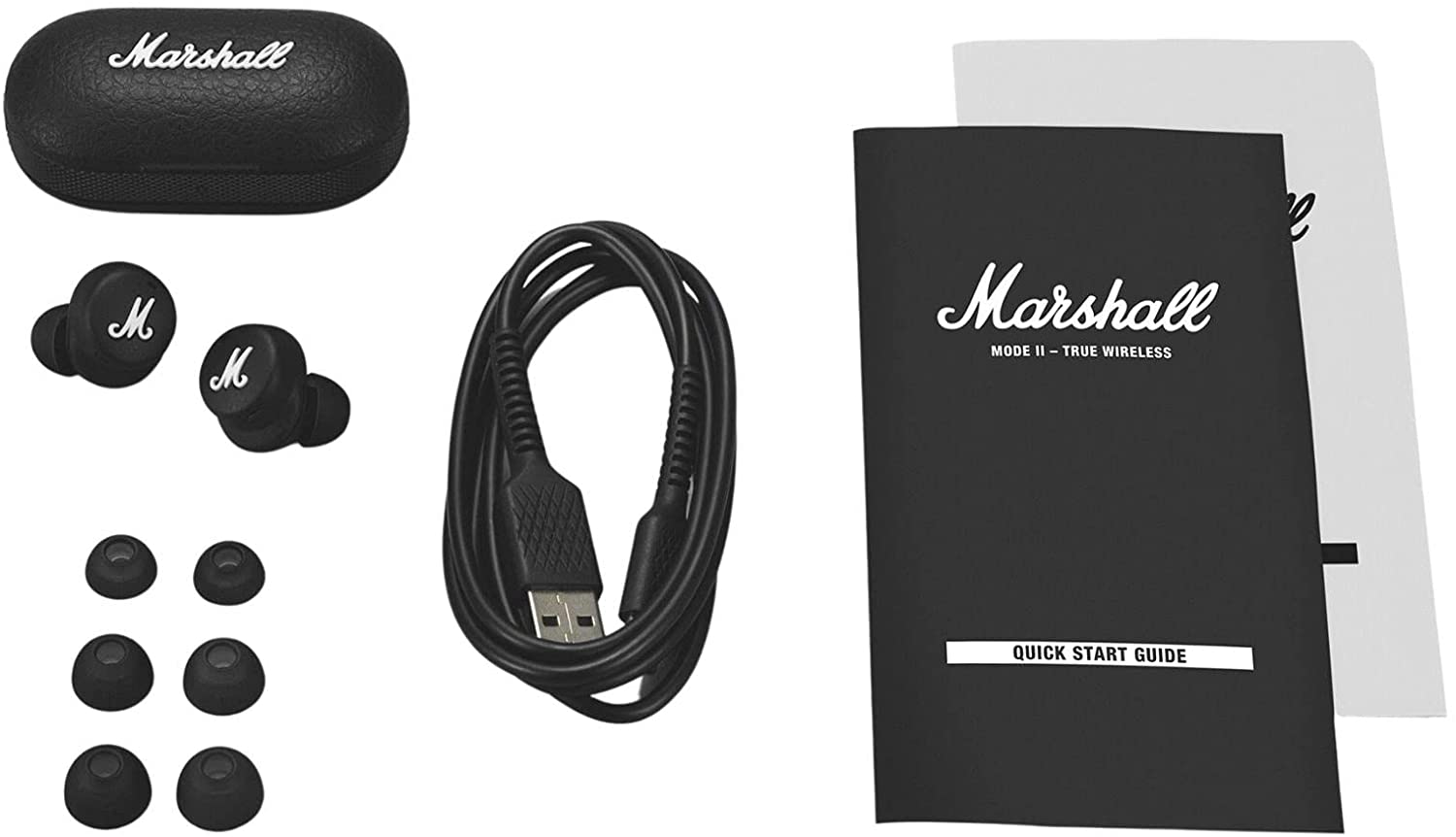 Marshall Mode II True Wireless In-Ear Headphone - Bluetooth 5.1, até 5 h de funcionamento / 25 h com estojo de carregamento, alcance bluetooth de até 10 m, fones de ouvido resistentes à água PX5, estojo de carregamento resistente a respingos de água IPX4, resposta de frequência 20 - 20.000 Hz, SPL 100,5 dB (179 mV @ 1 kHz), impedância de 16 Ohms, drivers de 6 mm, incl. capa de carregamento, cabo e pontas de ouvido (S / M / L / XL)