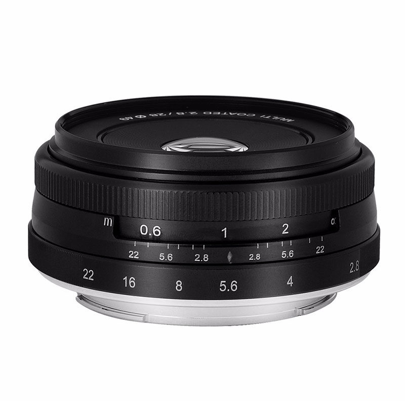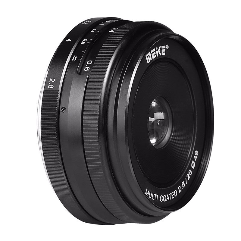 Lente X-mount Meike MK-28mm f / 2.8 Fujifilm A Meike MK-28 mm f / 2.8 é uma lente de distância focal fixa brilhante operada manualmente projetada para câmeras do sistema Fujifilm com montagem em X. A lente tem uma distância focal de 28 mm, tornando-a ideal para arquitetura, paisagem e fotografia de retrato. O diafragma circular com nove lâminas garante um bokeh muito bom em que o assunto se destaca do fundo. Com a abertura de f / 2.8, você pode até se dar bem com essa lente em condições de pouca luz. Ótica excelente e caixa de alumínio durável A ótica é composta por seis elementos de lente que são divididos em cinco grupos. Cada elemento da lente é tratado com um revestimento multicamada especial para excelente contraste e reprodução de cores. Com o foco de rotação suave e o anel de abertura, essa lente de 28 mm é muito agradável e precisa de operar. Uma caixa totalmente de alumínio significa que a lente Meike MK-28mm aguenta o impacto e é muito durável. Inclui uma bolsa prática e um pano de limpeza de microfibra. Características da lente Meike MK-28mm f / 2.8 Brilhante e compacto Foco manual e abertura Diafragma circular com nove lâminas Distância mínima de foco de 30 centímetros Carcaça de alumínio