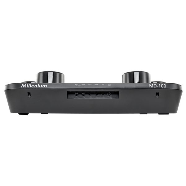 8 pads de bateria sensíveis à velocidade: 4 pads de caixa e tom de malha de 5" e 4 pads de prato de 3,5" 665 sons predefinidos 80 kits predefinidos 10 kits de usuário 110 músicas internas Metrônomo (40 - 240 bpm) EQ de 3 bandas (global) O modo Hand Perc permite que os pads sejam tocados manualmente O amostrador interno grava até 10 amostras com duração de até 3 segundos via microfone embutido ou entrada auxiliar Entrada auxiliar para fontes de áudio externas e amostragem: conector estéreo de 3,5 mm Saída de fone de ouvido (conector estéreo de 3,5 mm) USB-C para transmissão MIDI e fonte de alimentação Também pode ser operado com um banco de potência comum Montagem na parte inferior para suportes de caixa regulares Dimensões (L x P x A): 618 x 383 x 130 mm Peso: 3,38kg