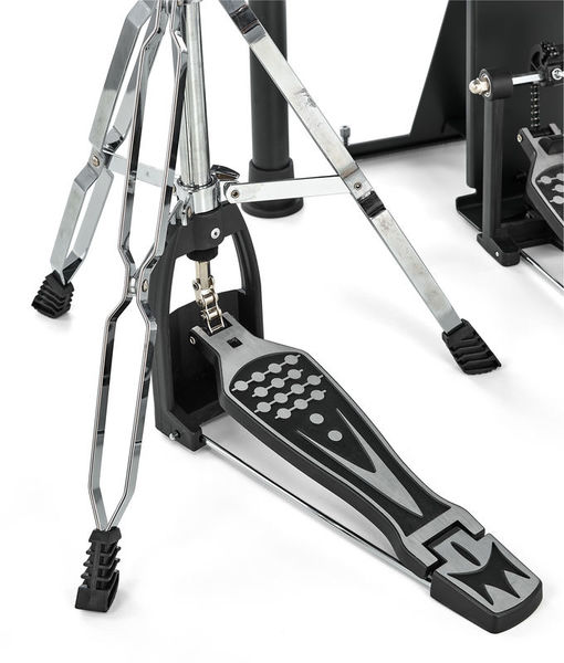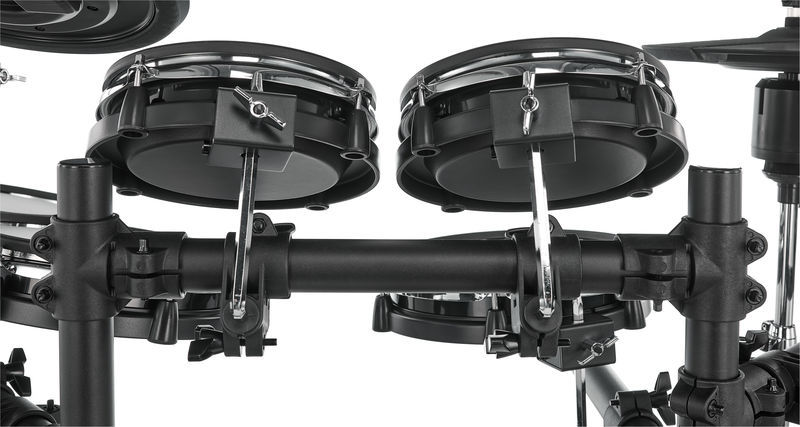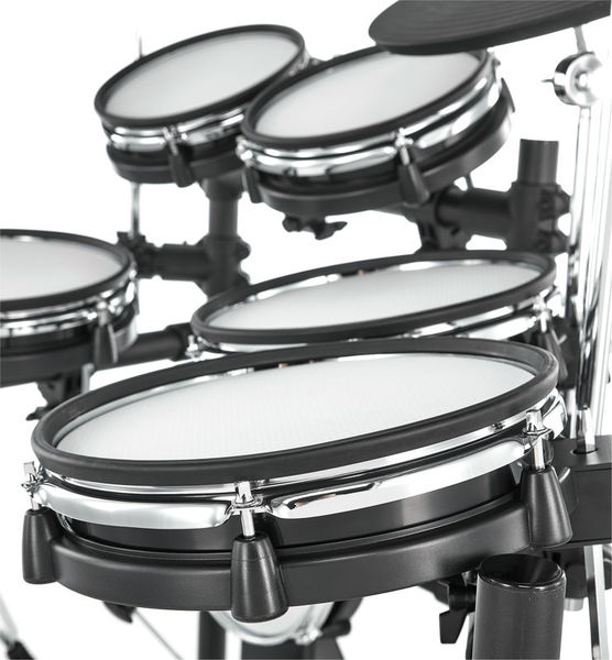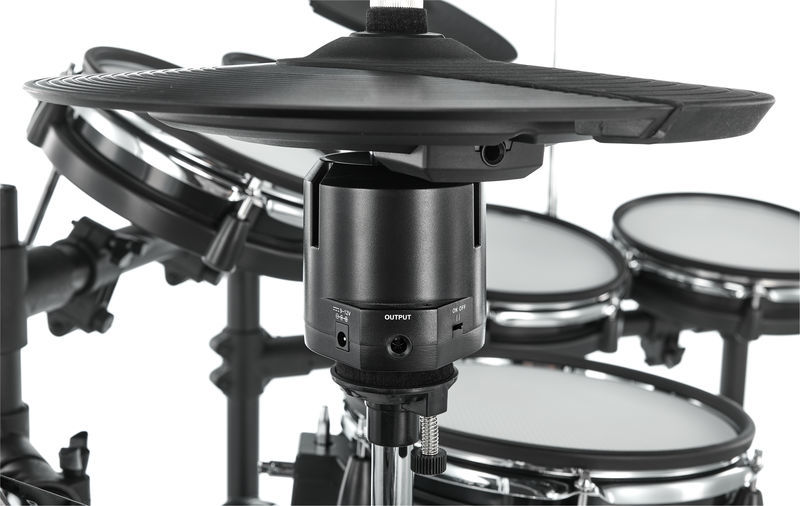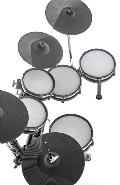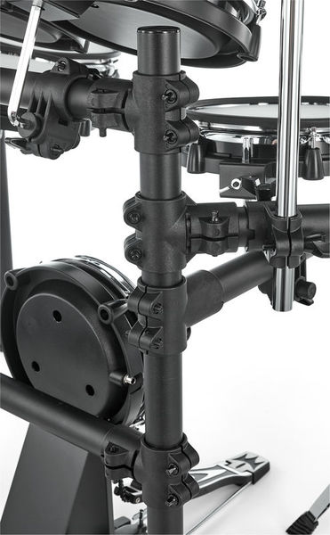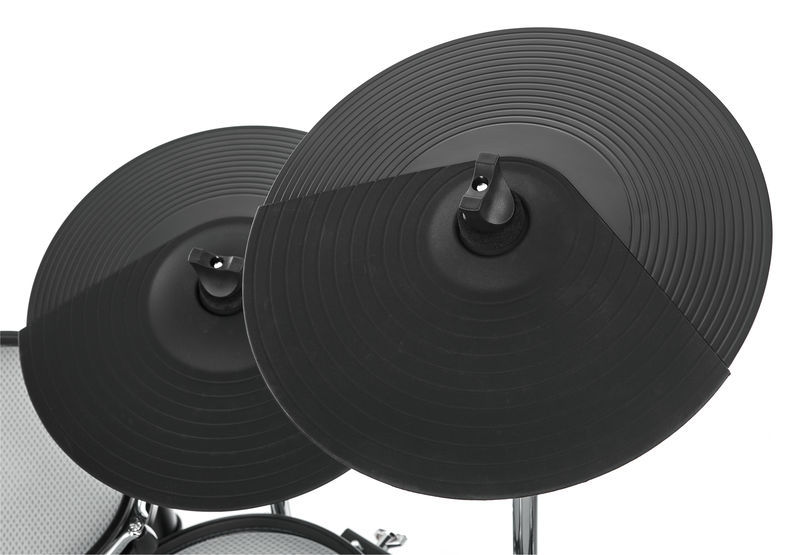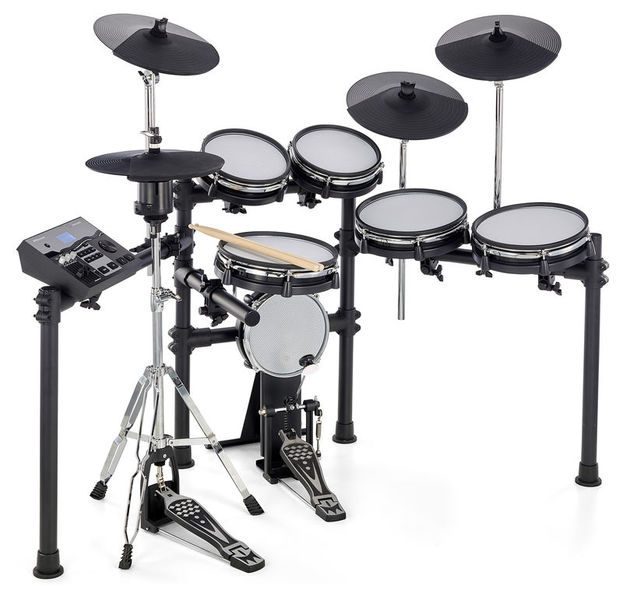 Conjunto completo de bateria elétrica 550 vozes 30 kits predefinidos 20 kits de usuário 100 canções 2 músicas de usuário Registro Rápido Metrônomo Equalizador para cada kit Tom Ressonância Compressor 6 Faders para ajustar o volume de pads, metrônomo e músicas individuais 2 saídas principais de tomada de 6,3 mm 1x saída de fone de ouvido com conector estéreo de 6,3 mm 1x entrada de linha jack estéreo de 3,5 mm 2 entradas de gatilho jack estéreo de 6,3 mm (já ocupadas pelo segundo travamento e o quarto bloco de tom) USB-MIDI Memória USB MIDI in / out Definir configuração: 1x 10 "almofada de laço de cabeça de malha de duas zonas 2x 08 "almofada de tom de cabeça de malha de duas zonas 2x 10 "almofada de tom de cabeça de malha de duas zonas 1x 08 "pad de bumbo com cabeça de malha 2x 12 "almofadas de prato de choque de duas zonas com função de parada 1x 12 "bloco de prato de condução de três zonas com função de parada 1x par de almofadas de chimbal de 12 "no tripé Hardware incluído: Rack de bateria Suporte de chimbal Pedal do pé Carregador Cabeamento 1 par de palitos