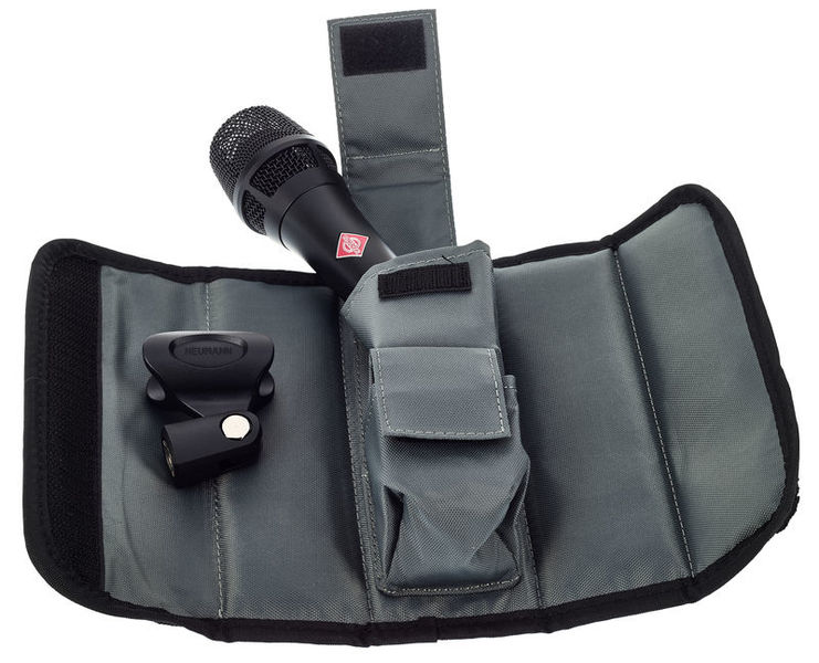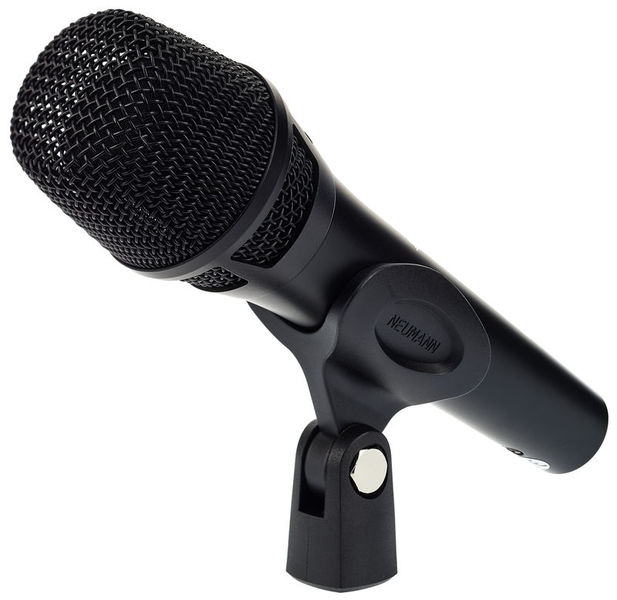 Microfone condensador O som Neumann para palco Alta transparência ao falar e cantar Circuito sem transformador Características supercardióides reduzem o feedback Desempenho de diafonia livre de coloração Peso: 350 g Comprimento: 180 mm Cor: preto Incl. braçadeira de microfone